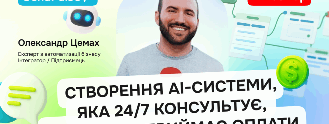 Цього тижня відбувся вебінар «Створення AI-системи, яка 24/7 консультує, продає та приймає оплати», який провів Олександр Цемах — експерт з автоматизації бізнесу, інтегратор та підприємець. Подія зібрала десятки підприємців та власників онлайн-бізнесів, які прагнуть вийти на новий рівень автоматизації.