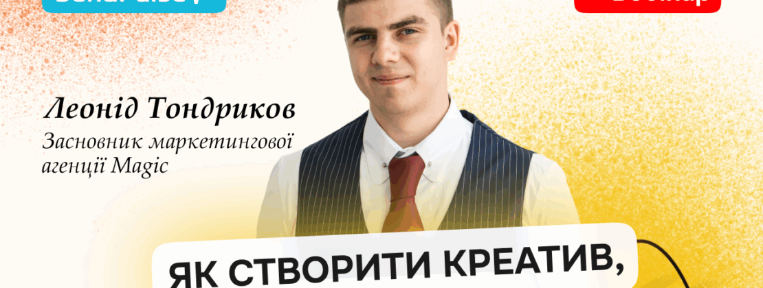 Цього тижня відбувся наш вебінар «Як створити креатив, що продає», який провів Леонід Тондриков, засновник маркетингової агенції Magic. Подія зібрала підприємців, маркетологів і всіх, хто хоче зрозуміти, як зробити рекламу не просто красивою, а такою, що приносить результат.