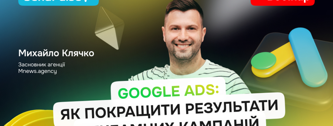 Як підняти ефективність реклами в Google Ads, збільшити продажі та зменшити витрати на залучення клієнтів? Ці питання стали ключовими під час нашого останнього вебінару «Google Ads: як покращити результати рекламних кампаній», який провів Михайло Клячко, засновник агенції Mnews.agency.