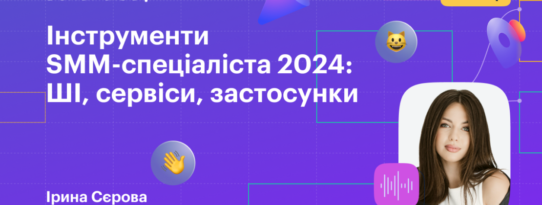 Запис вебінару «Інструменти SMM-спеціаліста 2024: ШІ, сервіси, застосунки».