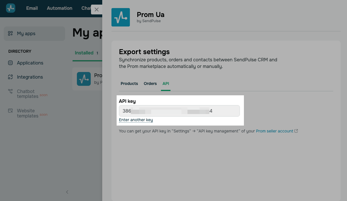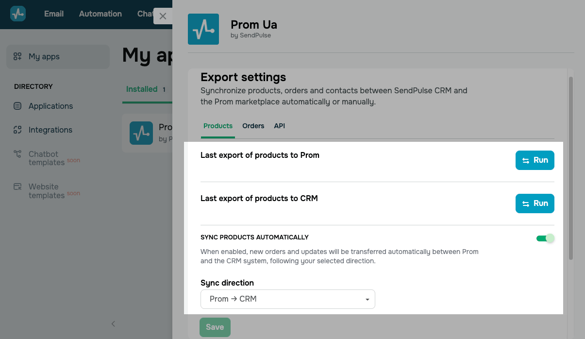 Налаштуйте експорт між SendPulse CRM та магазином на Prom