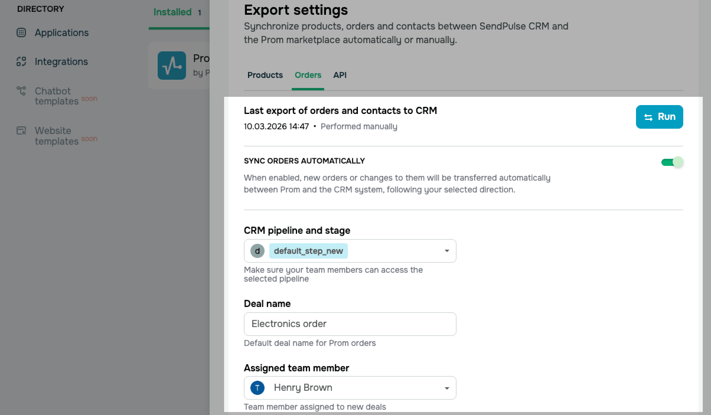 Синхронізуйте товари, замовлення й контакти між SendPulse CRM і магазином на Prom.