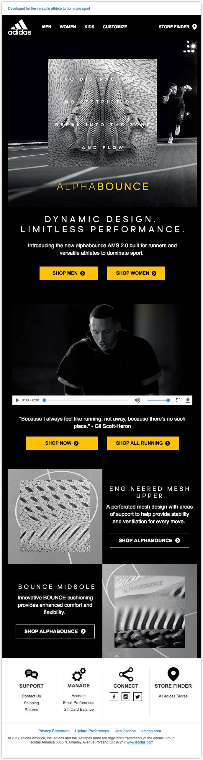 Adidas используют видео с известным легкоатлетом Джилом Скот-Хероном для рекламы новых кроссовок — это тактика маркетинга влияния, которая присуща многим брендам спортивной одежды.