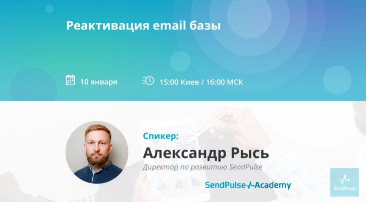 [Запись вебинара] Реактивация email базы Поделиться: Facebook Twitter 1 минута 4 октября 2024 Вебинар про реактивацию подписной базы. Спикер: Александр Рысь, директор по развитию SendPulse. Тезисы доклада: Как использовать начало года для реактивации базы Кейс Collar: увеличение OR в 2 раза Автореактивация на страже гигиены базы Влад Каснер Маркетолог SendPulse Посты по категориям Кейсы Чат-боты Email маркетинг Общая Лендинги Маркетинг и продажи Новости SendPulse Онлайн-курсы Полезные инструменты Вебинары Предыдущий пост [Запись вебинара] Особенности рассылок для В2В Следующий пост [Запись вебинара] Как организовать рассылки в компании Подпишись на нашу рассылку Последние посты Сергей Носенко Идеи для бизнеса на дому: 35 вариантов с минимальными вложениями 12 марта 2026 Сергей Носенко Кейс: запуск курса за 7 дней. Как создать MVP и автоматизировать продажи через экосистему SendPulse 6 марта 2026 Сергей Носенко 2025 год в SendPulse: глобальный рост, ИИ-революция и амбициозные планы 5 марта 2026