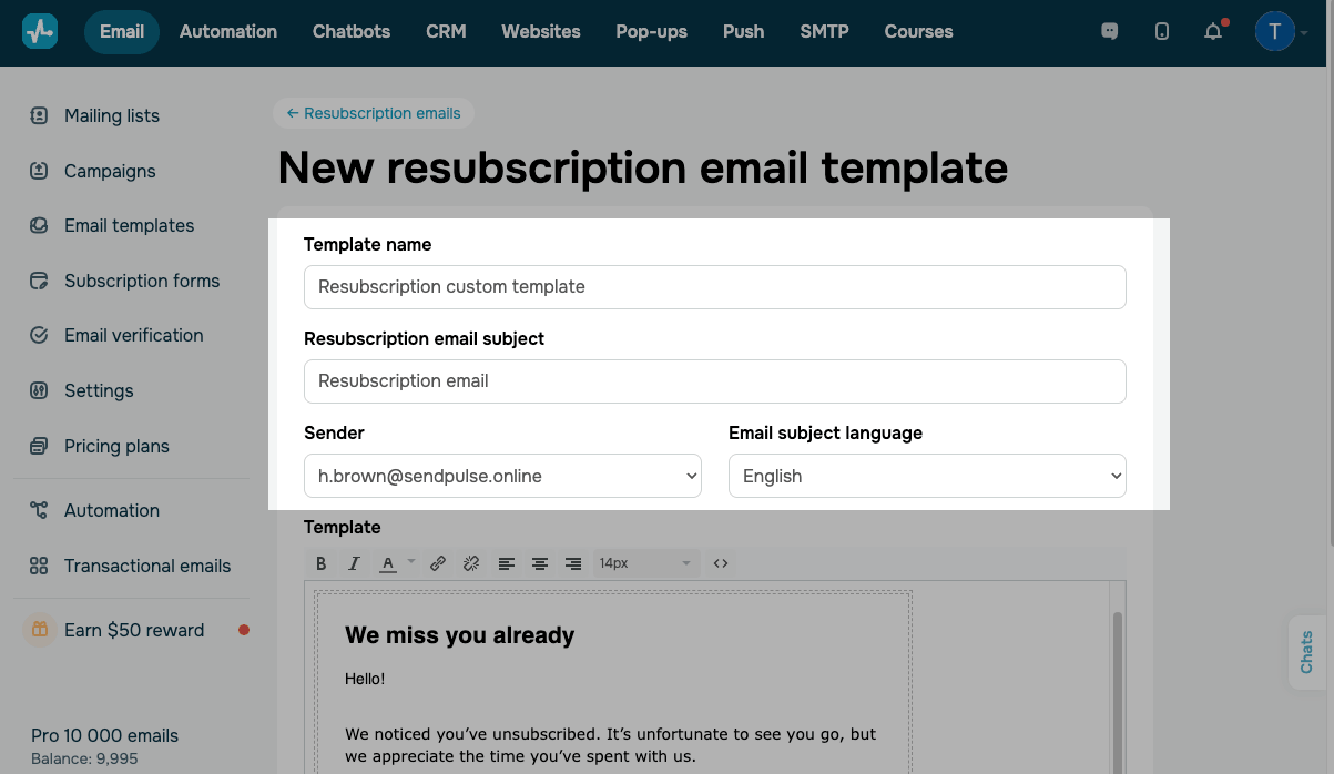 Внесите все изменения до сохранения шаблона. SendPulse проверяет письма переподписки каждый раз, когда вы их редактируете, поэтому подготовка контента заранее поможет ускорить этот процесс.
