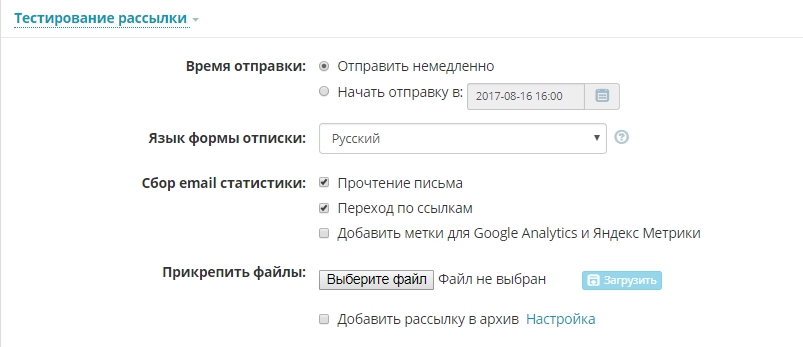 Включить сбор email статистики вы можете на последнем этапе создания рассылки.