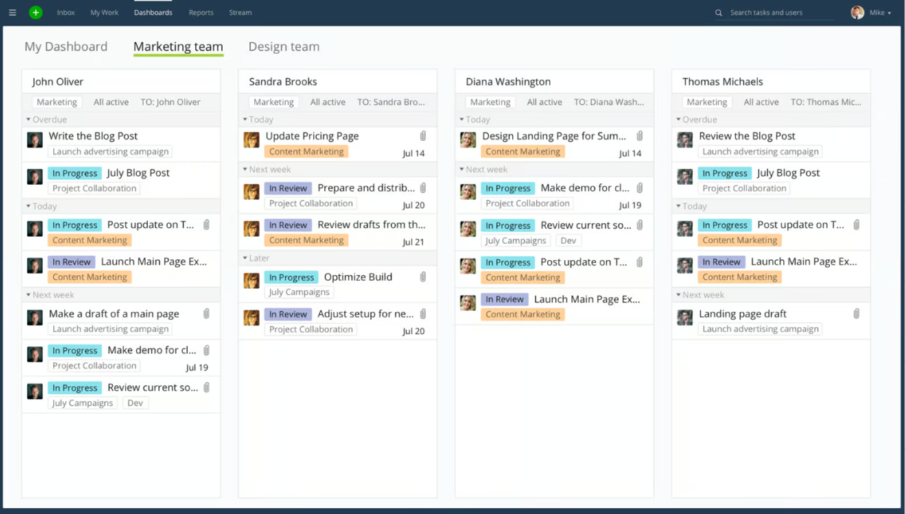 Такі системи управління проектами як Asana та Wrike дозволяють налагодити комунікацію на різних рівнях (у задачі, проекті, і всередині команди), а також відстежити прогрес кожного окремого проекту з різними варіантами візуалізації завдань: список, календар, таймлайн, дошки та особистий планувальник.