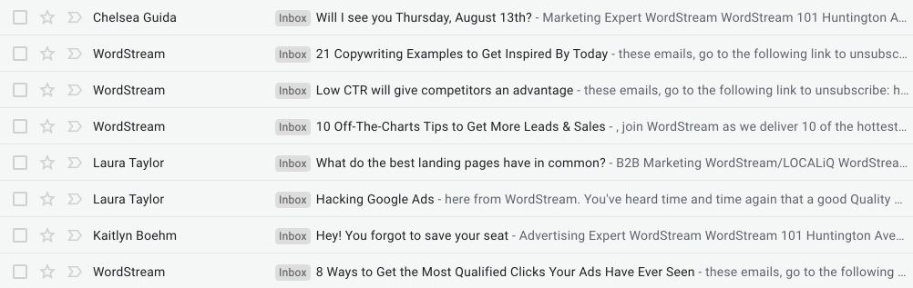 Wordstream надає кілька чудових прикладів тем листів, які є короткими, чіткими та зрозумілими з першого погляду.
