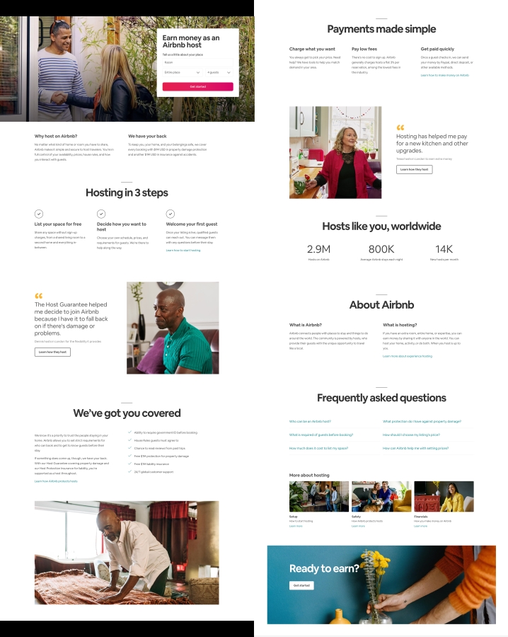 Webflow надає чудовий приклад продуманого лендінгу. Різні кольори для кожного блоку роблять структуру сторінки чіткою та утримують інтерес відвідувачів. Компанія використовує власні візуальні елементи, такі як колажі, відео, анімацію та інфографіку, щоб продемонструвати свій продукт та проілюструвати його переваги.