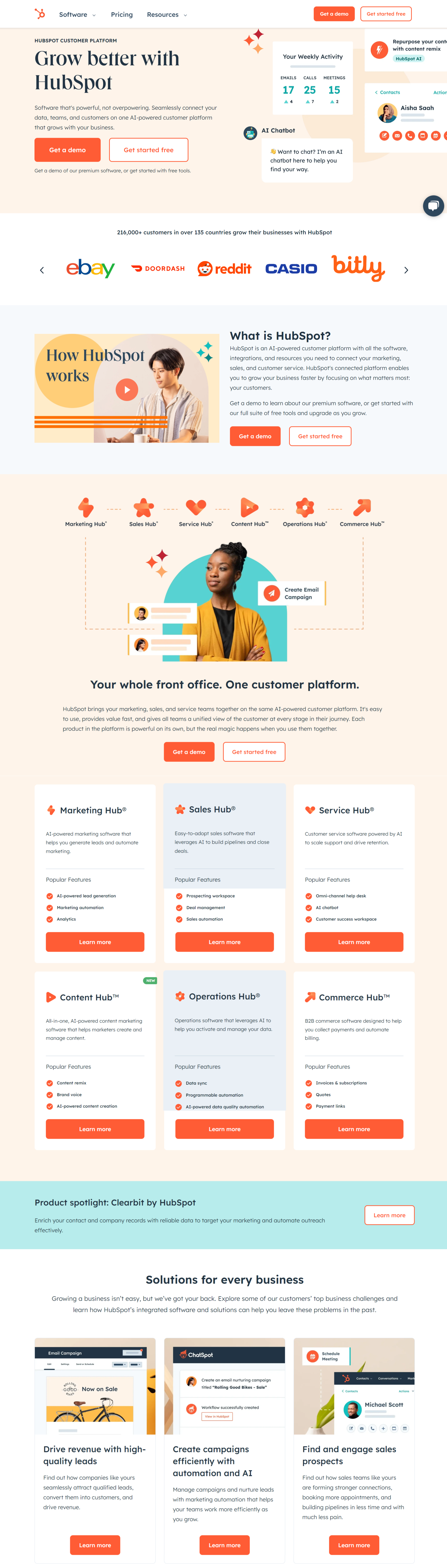 Потрапивши на сайт HubSpot, ви можете миттєво побачити, що пропонує компанія та які переваги можуть отримати клієнти. Ціннісна пропозиція є чіткою, лаконічною та видимою для всіх, хто відвідує сторінку.
