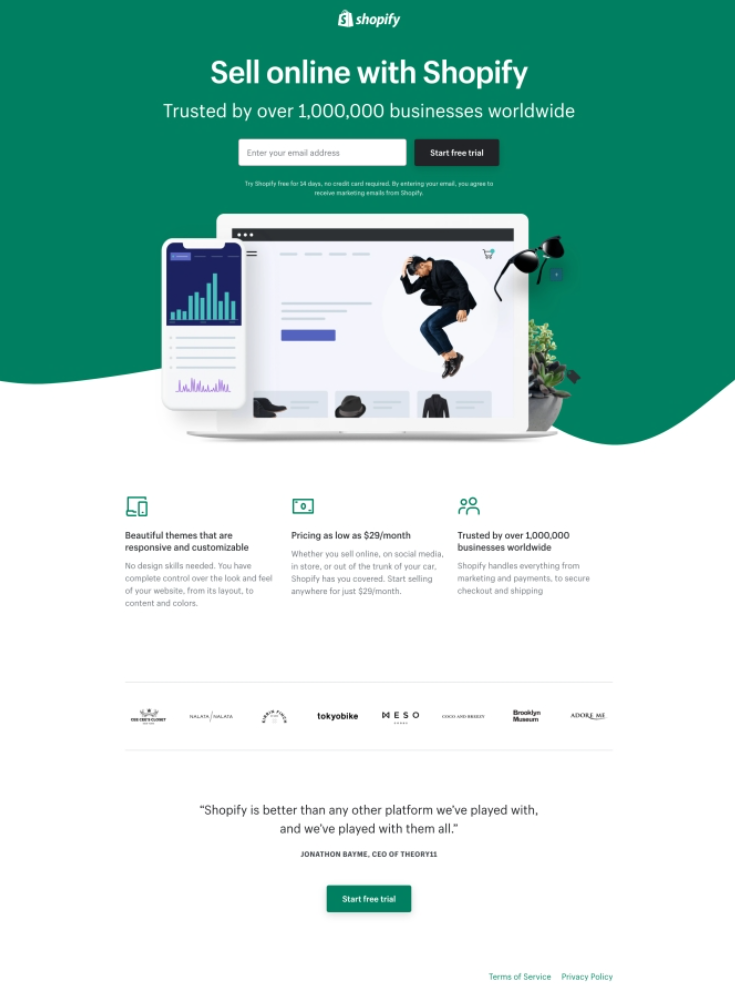Кнопка заклику до дії розташована на першому екрані та одразу привертає увагу відвідувачів. Крім того, Webflow підсилює свій заклик до дії соціальним доказом — логотипами клієнтів — що підвищує коефіцієнт конверсії.