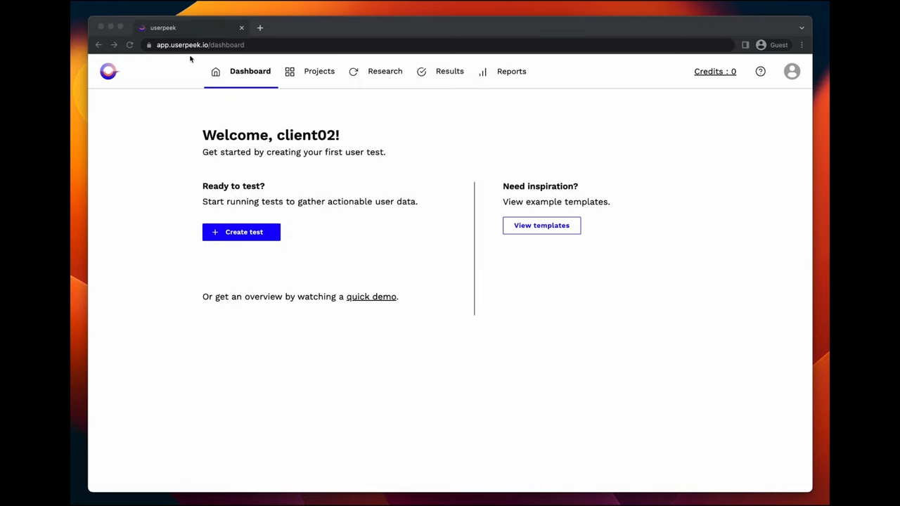 Нижче ви можете побачити процес створення тестування користувачів в Userpeek.
