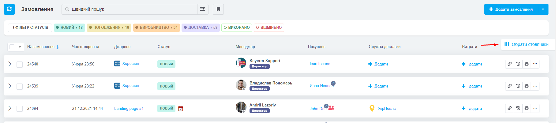 Нижче ви можете побачити всі завдання, поставлені працівникам в CRM та їхні статуси.