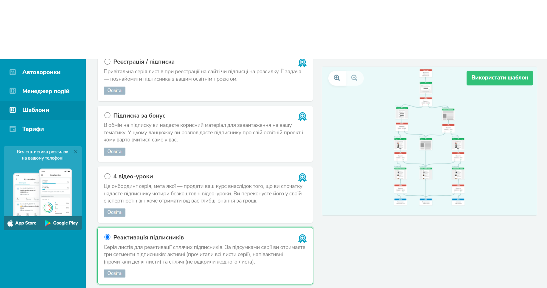 Найпростіший спосіб зробити це за допомогою email маркетингу. Платформи, такі як SendPulse, дозволяють відстежувати активність ваших підписників і автоматично надсилати реактиваційні розсилки. Усе, що вам потрібно зробити, це налаштувати ланцюжок, який розпочнеться через шість місяців після того, як підписник припинить взаємодію з вашими листами. SendPulse автоматично надішле ці повідомлення в потрібний час. Ви можете також обрати вже готовий ланцюжок.
