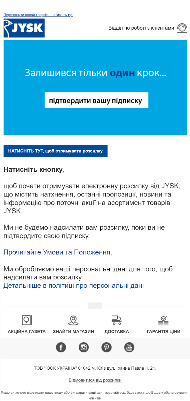 У листі бренд просить користувача перейти за посиланням, якщо він хоче підписатися.