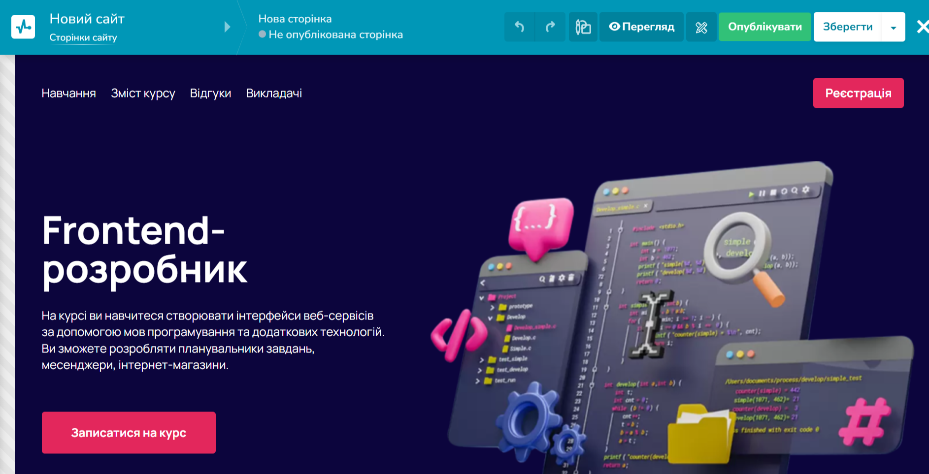 Нижче ви можете побачити, який сайт дозволяє вам створити платформа.