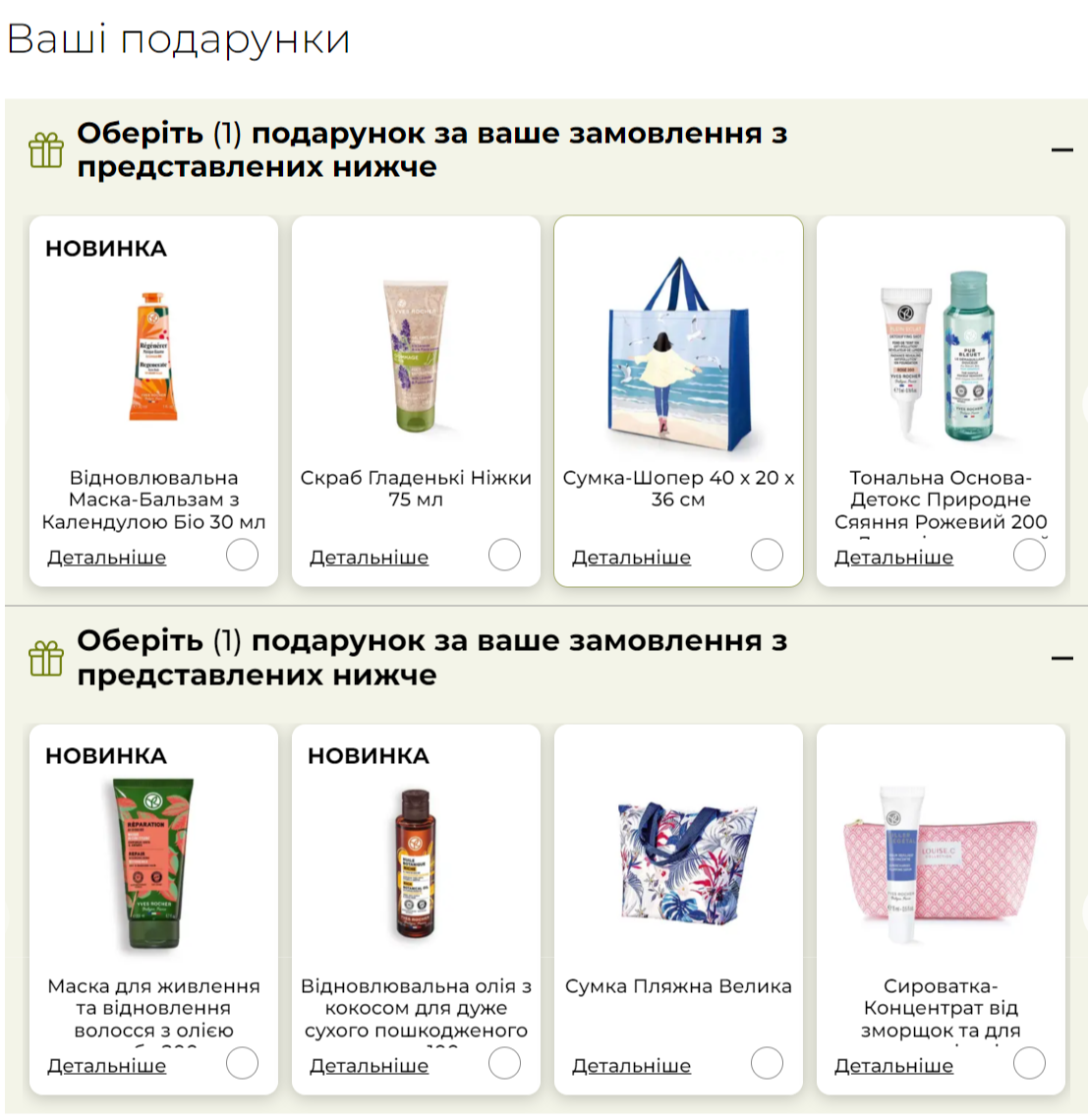 При оформленні замовлення клієнти бренду також можуть обрати подарунки.
