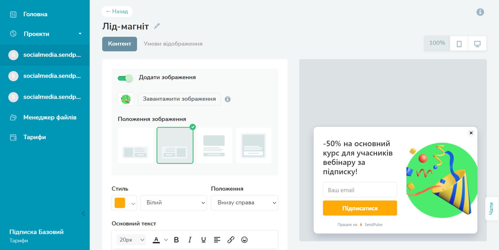 Розумні попап-форми від SendPulse дозволяють вам персоналізувати комунікацію з відвідувачами через умови відображення.