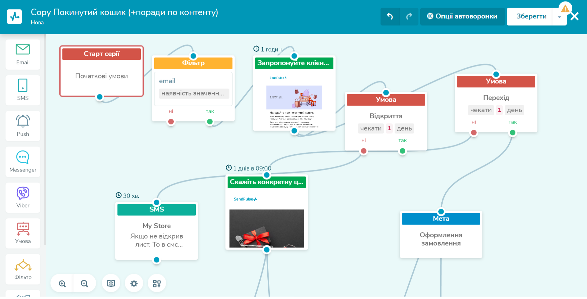 На цьому етапі доцільним буде використання автоматичних розсилок (наприклад, для нагадування про покинутий кошик) та інформаційних для інформування про привабливі пропозиції, знижки та набори продуктів за вигідною ціною. Ці листи заохочуватимуть покупців до закриття угоди. Використовуйте SendPulse для створення професійних розсилок без знання коду.