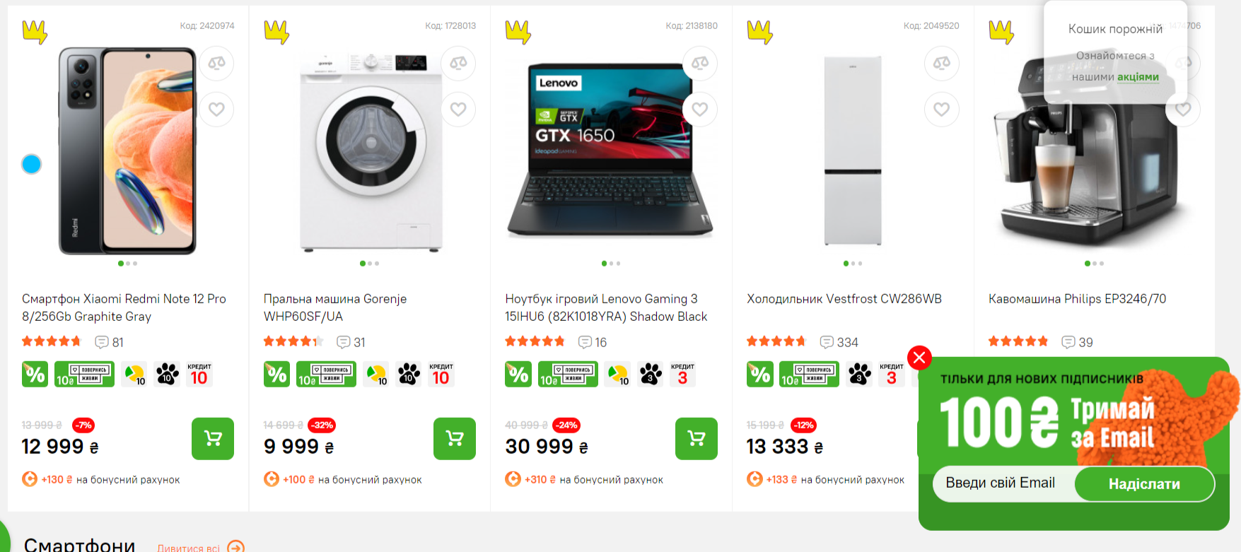 Наприклад, магазин електронніки і побутової техніки Comfy пропонує 100 грн знажки для нових підписників в обмін на їхню email адресу.