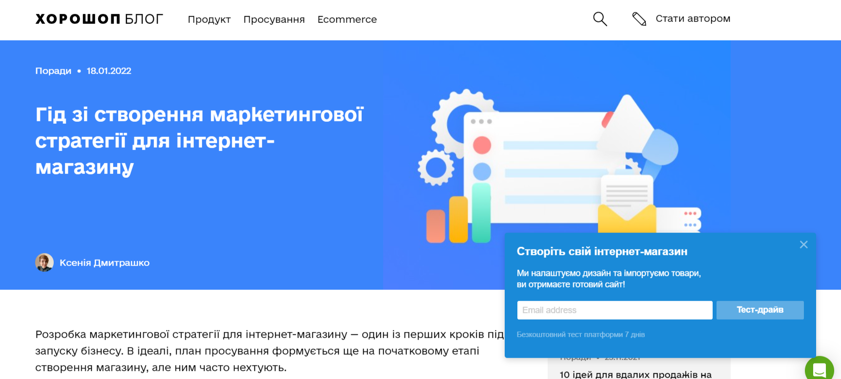 Плафторма для створення інтернет-магазину Хорошоп пропонує безплатний тест-драйв сервісу протягом 7 днів в обмін на email адресу користувача.