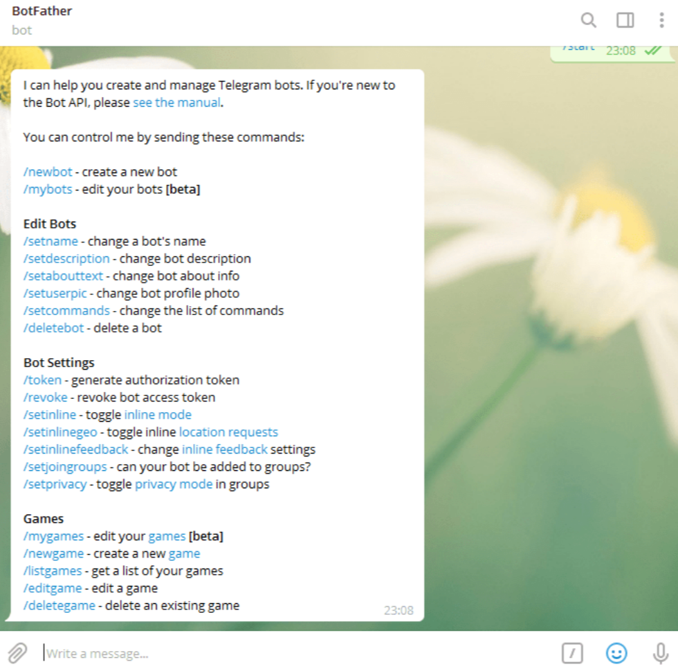 Далі підпишіться на свій бот і переходьте до налаштувань. Ознайомтеся з цією інструкцією зі створення автоматизованого ланцюжка для Telegram чат-бота в нашій базі знань.