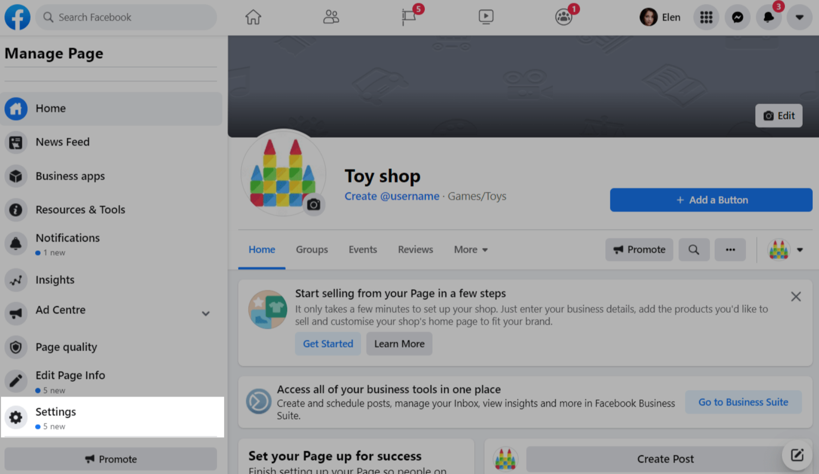 Відкрийте сторінку вашої компанії у Facebook і перейдіть до «Налаштування» (Settings).