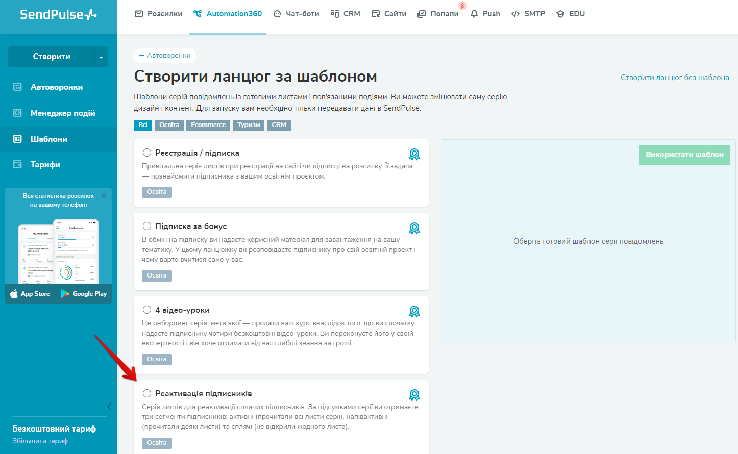 В SendPulse ви можете налаштувати автоматичну відправку реактиваційних листів за допомогою Automation 360. Сервіс пропонує готові шаблони з листами і подіями, які ви можете редагувати. Для того, щоб створити таку розсилку, треба передати ваші дані в SendPulse.