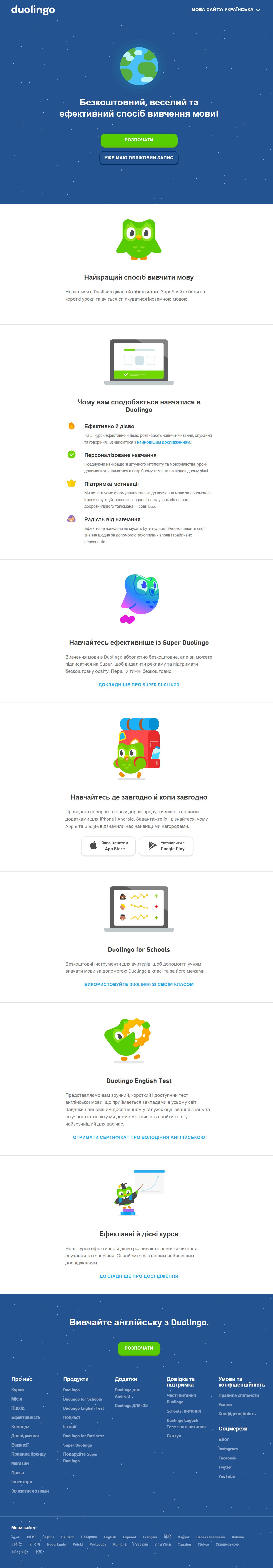 Одним із чудових прикладів є Duolingo. Сервіс має сайт та чудовий мобільний застосунок, який дає змогу людям вивчати іноземні мови та відвідувати курси, щоб покращити та перевірити свій рівень володіння мовою. Завдання — дуже різноманітні і допомагають вивчати мову в різних форматах.