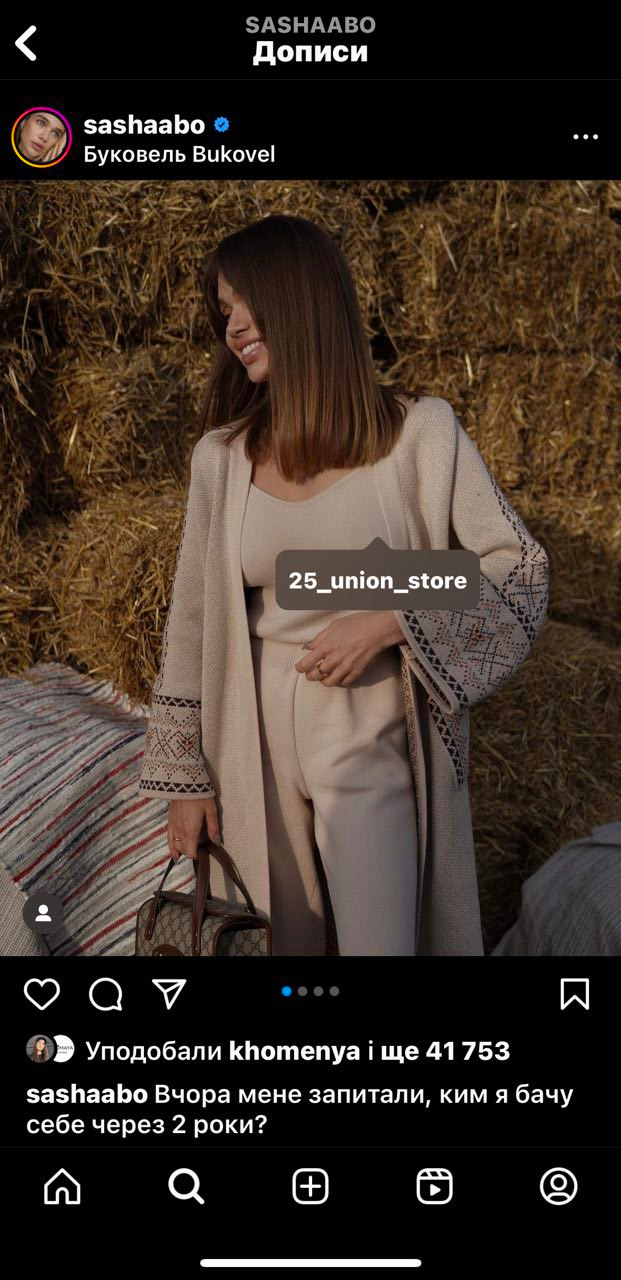 Олександра Тарнавська, відома як Саша Бо, — українська блогерка, інфлюенсер, власниця салону «Stories by Sashaabo» та клініки естетичної косметології «Stories Aesthetic Clinic». Дівчина розпочала свій шлях саме через блог в Instagram у 2016 році. Тематикою блогу була краса, здоров’я, материнство, лайфстайл. Олександра рекламує одяг, косметику та засоби догляду за тілом відомих брендів. Дівчині довіряють, оскільки вона все тестує на собі та має бізнес в цій ніші. Олександра часто відмічає бренди на своїх фото, бо її аудиторія їй довіряє.