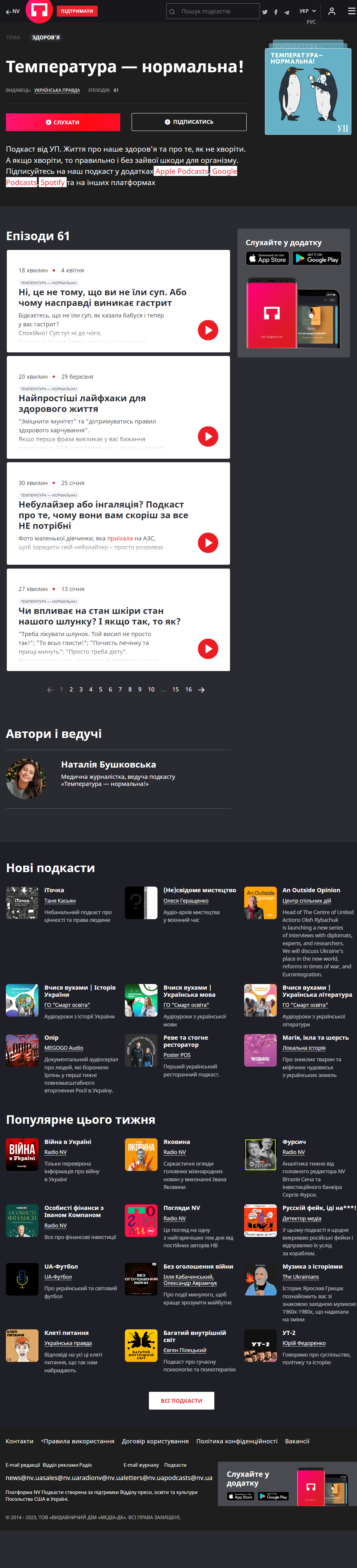 В якості прикладу розглянемо незалежне інтернет-видання “Українська правда”, що висвітлює економічну та суспільно-політичну ситуацію в Україні. Вони пропонують подкасти на різні теми та запрошують спеціалістів. Послухати можна на сайті або в додатку.