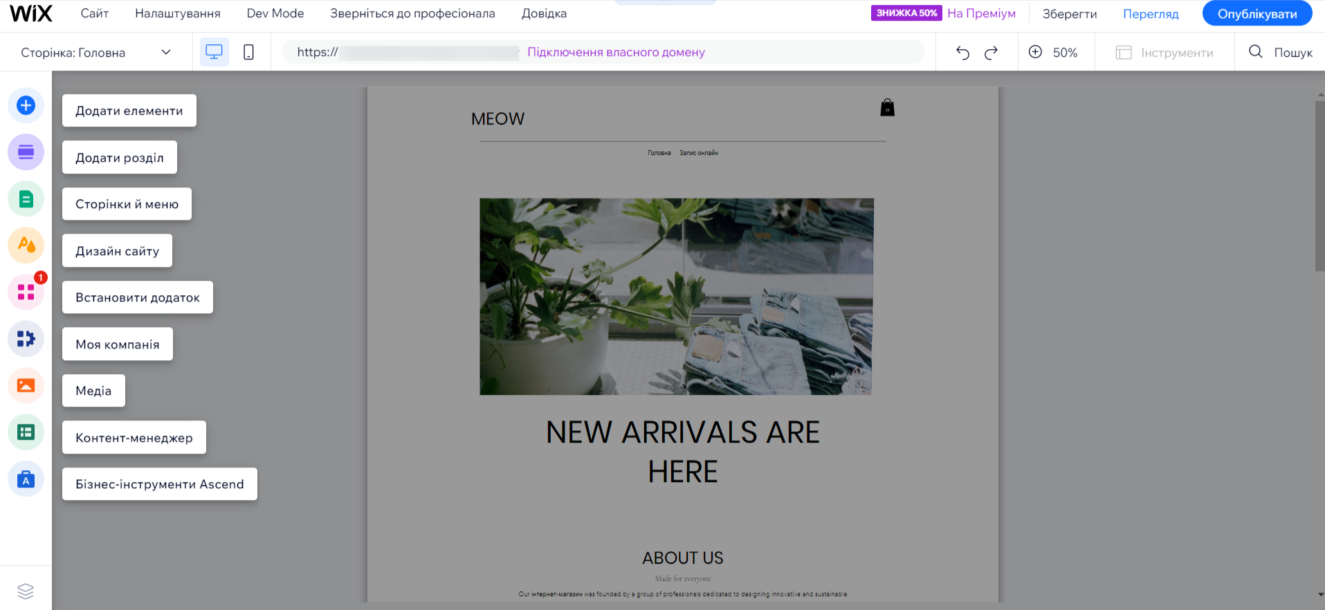 WIx — один з найпопулярніших конструкторів сайтів, який дозволяє користувачам створювати сайти самостійно або скористатися послугами спеціаліста для створення, дизайну і просування сайту. Під час реєстрації WIx пропонує обрати вашу сферу діяльності, цілі та завдання та обрати потрібні функції: онлайн-запис, форми, інтернет-магазин, чат, стрічка Instagram. Після цього платформа підбере найбільш релевантні вашим потребам дизайни головної сторінки та самі сторінки, з яких ви можете обрати те, що найбільше сподобається.